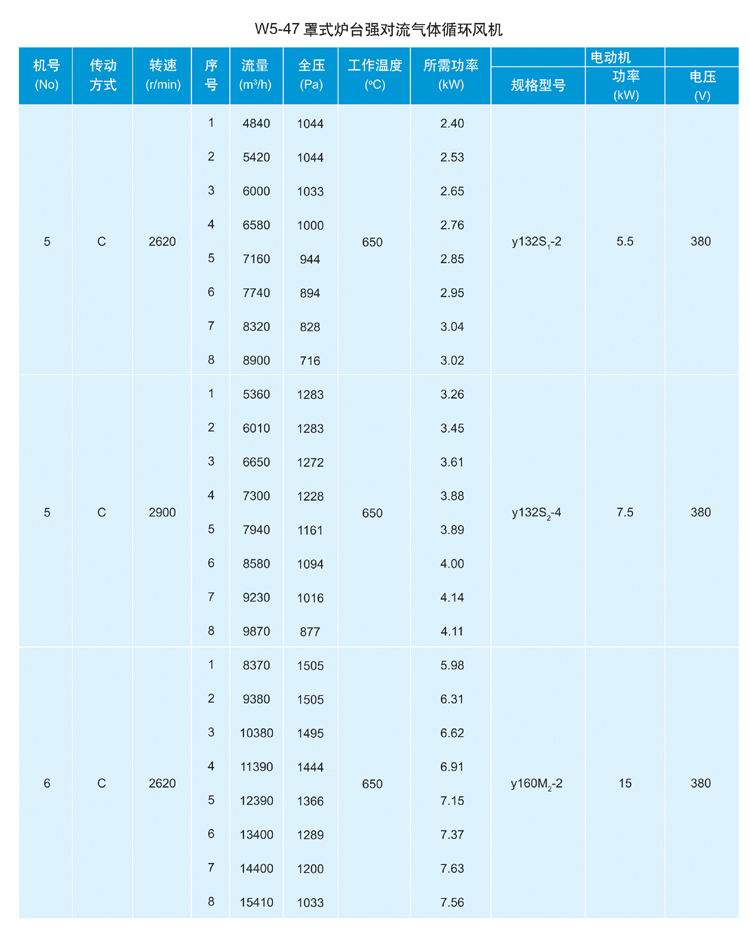 本風機有№4、4.5、5、5.6、6.3、7.1、8、9、10、11.2、12.5、14、16共十三個機號。