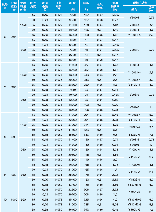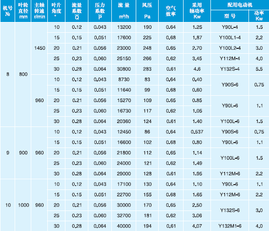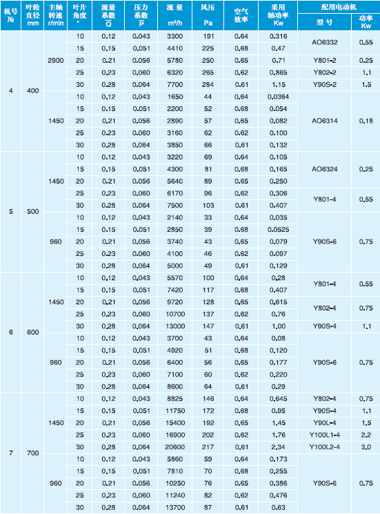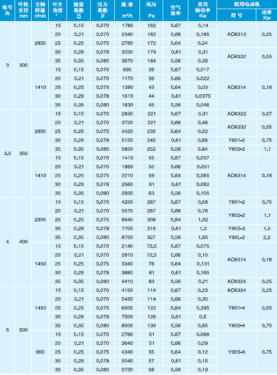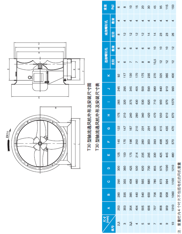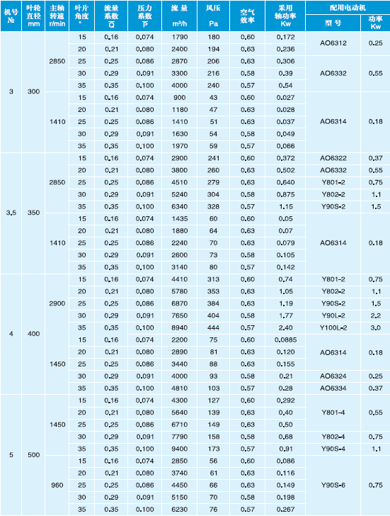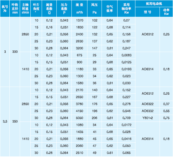 T30型軸流通風(fēng)機(jī)性能與選用件表