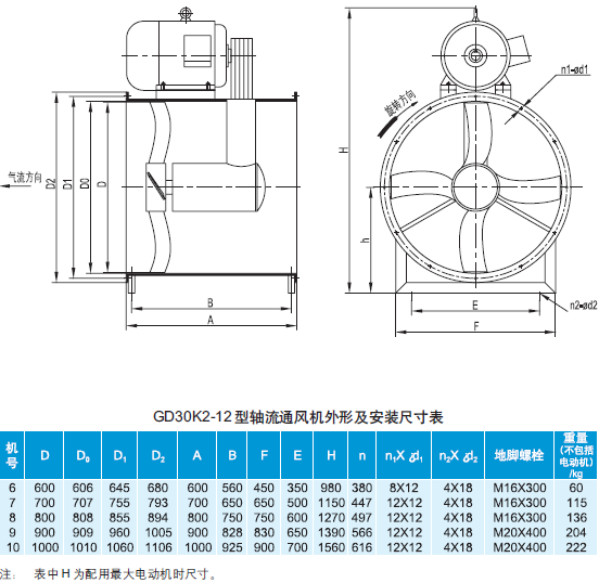 GD30K2-12型軸流通風(fēng)機(jī)性能與選用件表